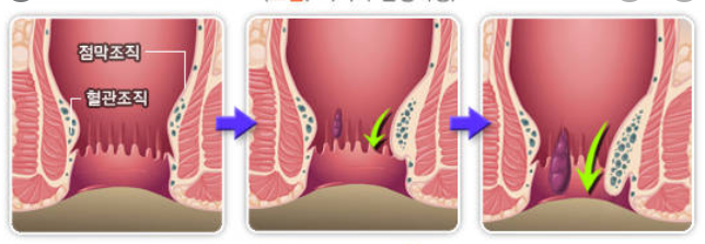 3단계 : 변을 볼때 항문으로 어떤 것이 나왔는데 저절로 들어가지가 않는 경우 입니다. 이때는 손으로 넣어주거나 합니다.
