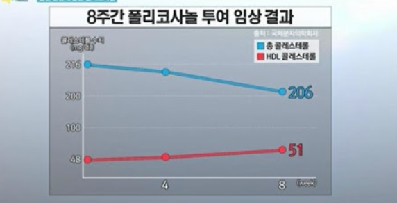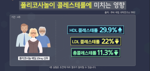 우리나라 실험에서도 수치가 눈에 띄게 조절되는 실험결과와 쿠바 과학 연구소에서도 인체시험을 통해 콜레스테롤 수치 조절에 큰 효과가 있다고 밝혀졌습니다. 따라서 콜레스테롤 수치 조절에 큰 도움이 됩니다.