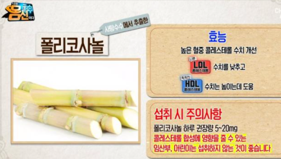첫번째로는 콜레스테롤 수치 조절에 큰 도움이 됩니다. 폴리코사놀은 혈관 건강에 많이 좋은 이유가 나쁜콜레스테롤 수치는 낮춰주고 좋은 콜레스테롤 수치는 높여 준다는게 실험에 밝혀졌습니다.